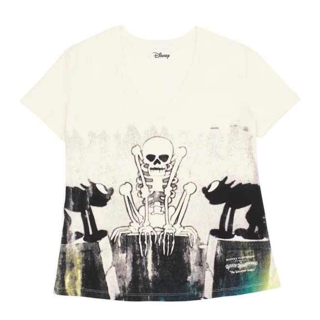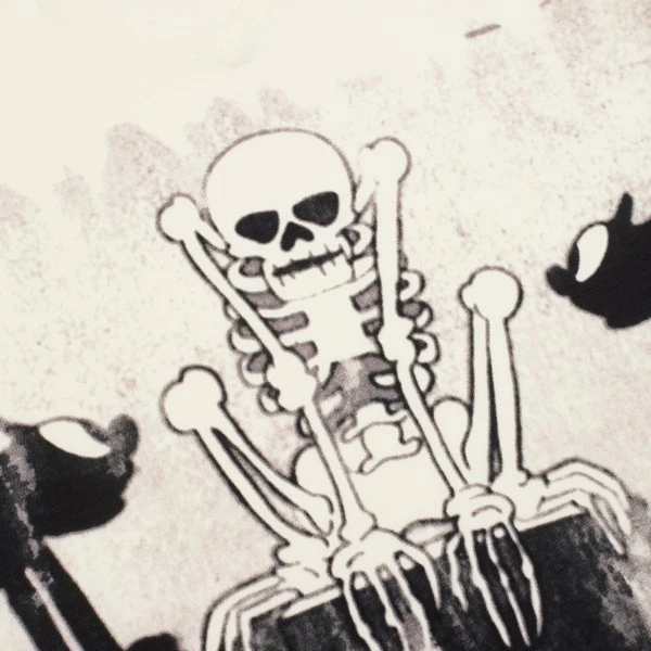 Faire de vieux os ? Pourquoi pas, avec ce t-shirt à col plongeant et son motif classique inspiré des personnages de La Danse macabre.