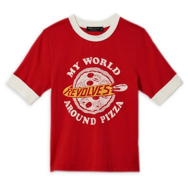 Détendez-vous avec ce t-shirt Toy Story x Junk Food décontracté ! Ce modèle inspiré par Toy Story a des manches courtes, des garnitures contrastantes, un motif pizza tiré du film et une inscription « My World Revolves Around Pizza ».