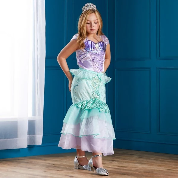 Votre petite sirène va être comme un poisson dans l’eau dans ce déguisement enchanteur de la belle Ariel ! Ce modèle chatoyant est décoré de végétation sous-marine luxuriante, de sequins et de couches de tulle, avec une broche coquillage argenté en touche finale.