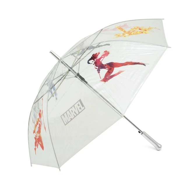 Les héroines de Marvel vous gardent au sec les jours de pluie ! Ce parapluie épique présente des panneaux transparents et des motifs stylisés à l’effigie des personnages.
