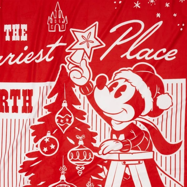 Avec un petit coup de main de Mickey et Minnie, invitez l’esprit des fêtes à vous tenir compagnie sous cette couverture aux airs festifs qui vous tiendra chaud pendant l’hiver !