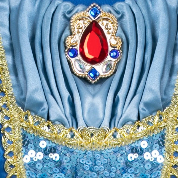 Votre enfant sera éblouissant dans ce déguisement de Blanche Neige ! Cette robe en satin avec dorures métallisées est accompagnée d’une cape avec col en organza.