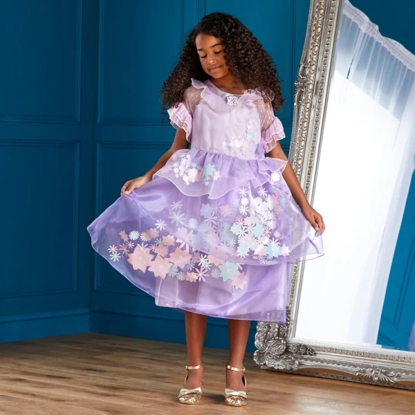 Grâce à ce déguisement enchanteur, votre oruguita se métamorphosera en Isabela, l’élégante grande soeur de Mirabel. Avec sa jupe à volants, ses bordures froncées et ses délicats appliqués fleurs, cette robe pastel fera naître la magie d’Encanto !