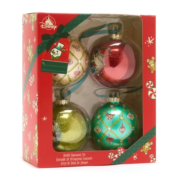 4 boules de Noël aux motifs classiques à l’effigie de Micley et Minnie pour sublimer votre décoration avec une note de Disney !