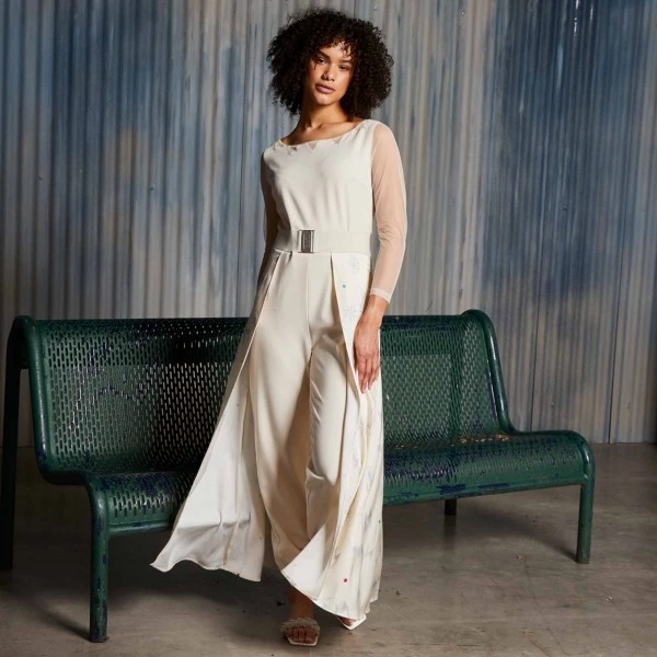 - Combinaison avec empiècements triangulaires en tulle à l’encolure