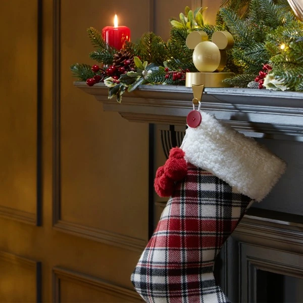 Le père Noël s’empressera de déposer ses cadeaux dans cette charmante chaussette de Noël. Issu de la collection Mickey Mouse Homestead, ce modèle au style tricoté se compose d’une bordure motif écossais et de pampilles de têtes de Mickey brodées.