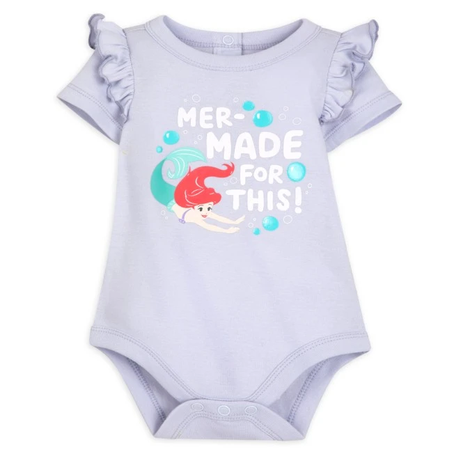 Bébé va faire des vagues avec cet adorable body La Petite Sirène ! Décoré de motifs stylisés à l’effigie d’Ariel, il présente une inscription « Mer-made for this » et des boutons-pression au dos et sous les jambes.