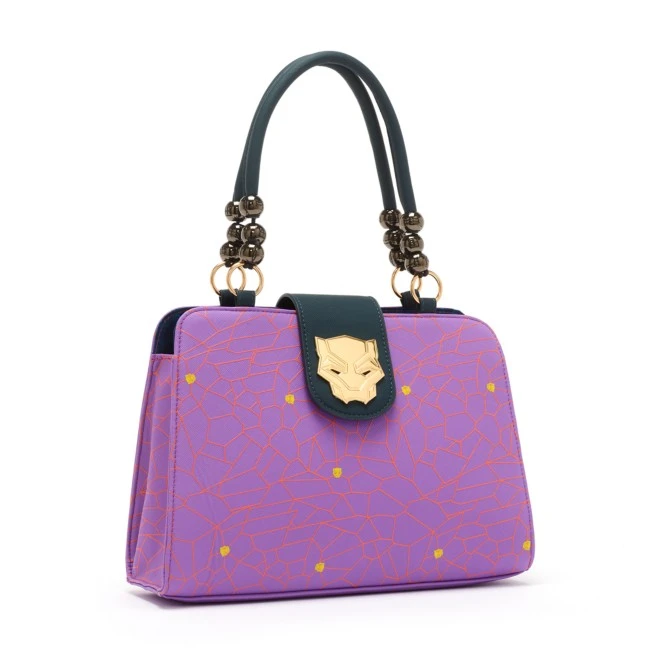 Agissez avec la fierté et le style wakandais en adoptant ce sac à main entièrement recouvert d’un imprimé coloré ! Ce produit de la collection Black Panther: World of Wakanda a une anse ornée des perles noires emblématiques et un fermoir avec le logo Black Panther cloisonné.