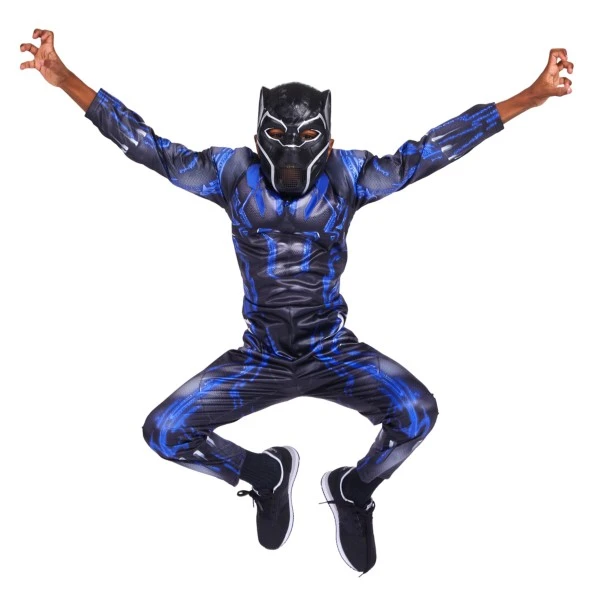Votre petit guerrier du Wakanda va pouvoir démontrer son incroyable habileté au combat ! Ce superbe déguisement high-tech s’illumine sur le torse et s’accompagne d’un masque moulé en plastique.