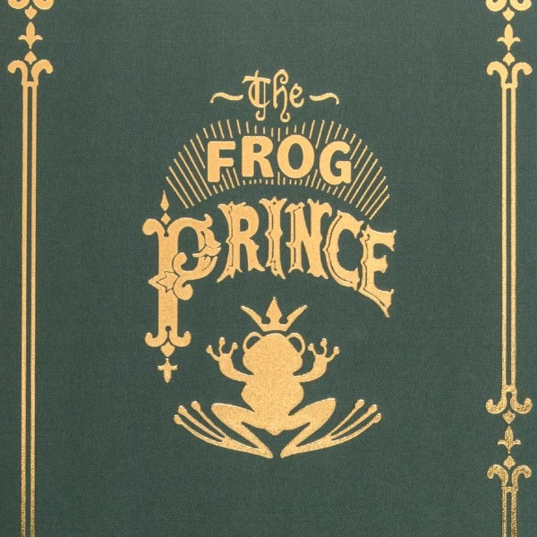 - Modèle relié avec couverture en tissu, dorures et inscription « The Frog Prince » (Le Prince Grenouille)