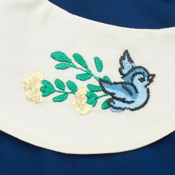 - Col Claudine contrastant avec fleurs, oiseau et pomme brodés