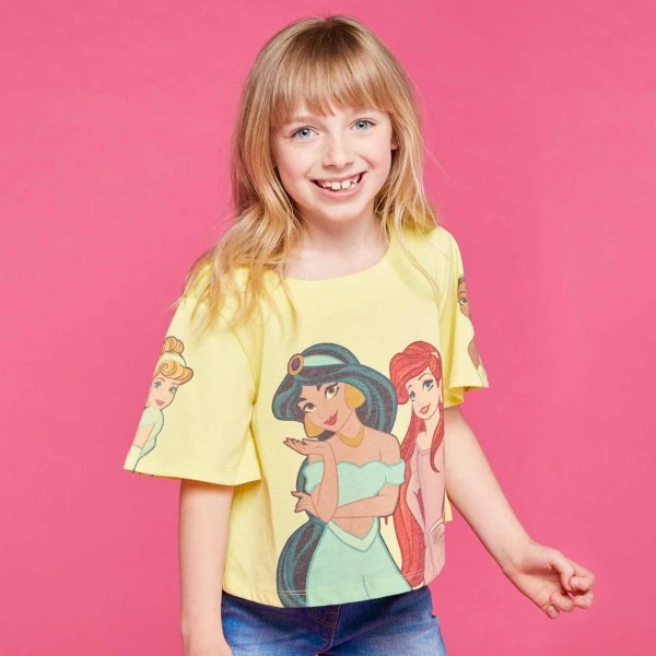 Les jeunes héritiers et héritières pourront explorer des mondes féeriquessur terre ou au fond des océans dans ce joli t-shirt décoré de motifs classiques de Cendrillon, Jasmine, la Petite Sirène et Tiana.