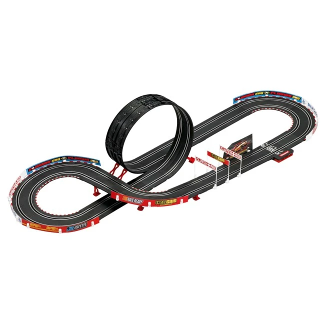 - Contient un circuit, 2 voitures et 2 télécommandes, 1 transformateur, des accessoires et des éléments décoratifs pour le circuit