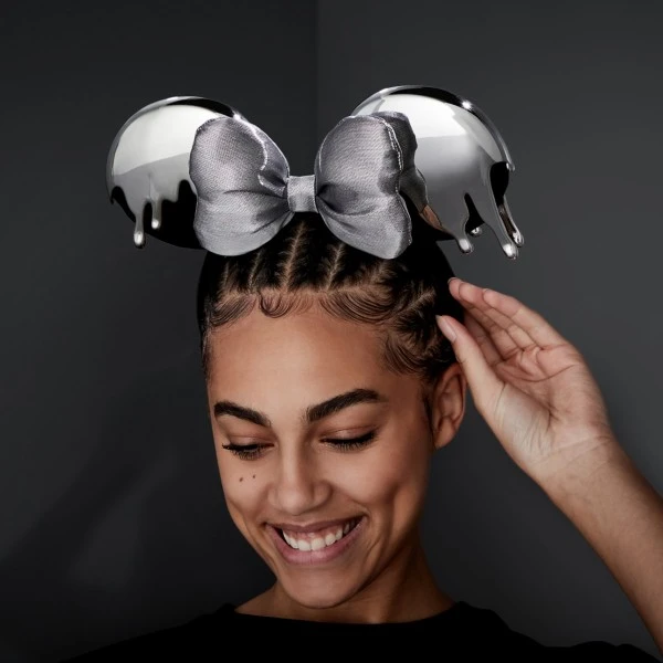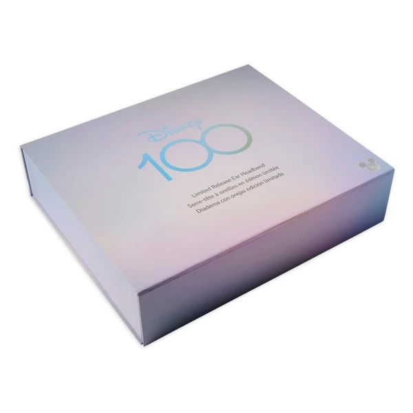 Célébrez le centenaire de The Walt Disney Company avec ce chapeau à oreilles Mickey en édition limitée. Il fait partie de la collection Disney100 Celebration et a été créé par des artistes Disney. Ce modèle, qui semble avoir été trempé dans du platine réfléchissant, est présenté dans une boîte commémorative.