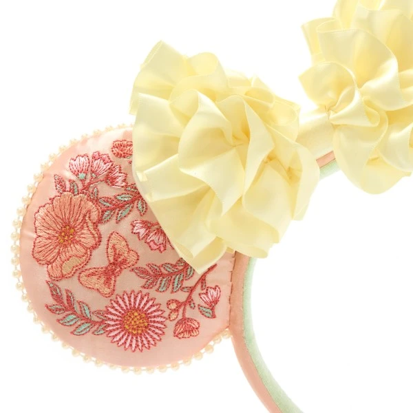 Ces élégantes oreilles de Minnie au ton pastel comportent des fleurs brodées et un grand noeud. L’accessoire parfait pour enchanter votre look lors de vos virées à Disneyland.